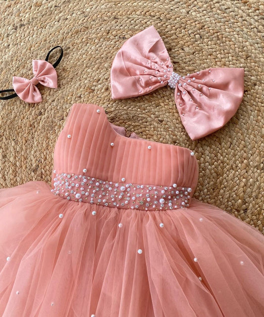 Classy Pearl Peach Colour Baby Dress